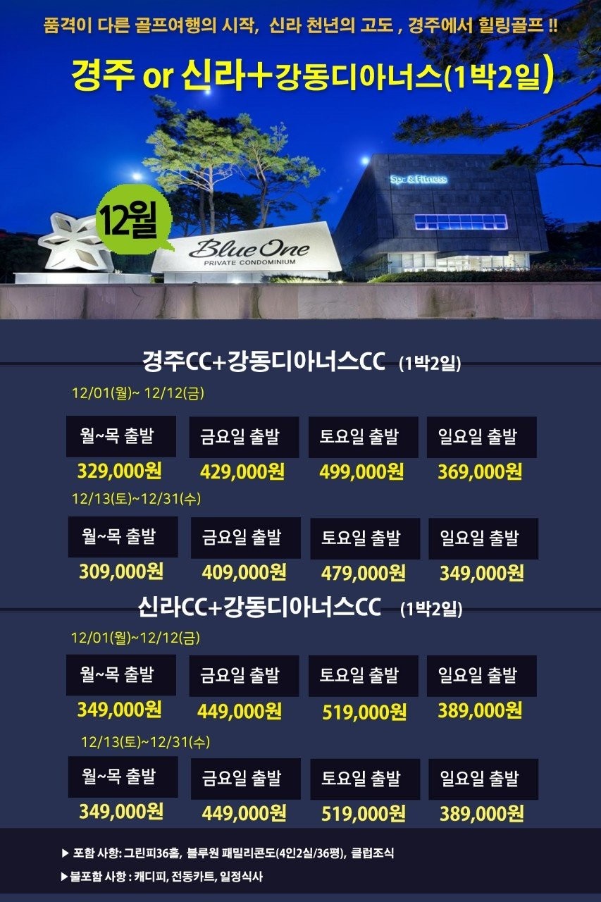 경주cc 또는 신라cc+강동디아너스(1박2일)